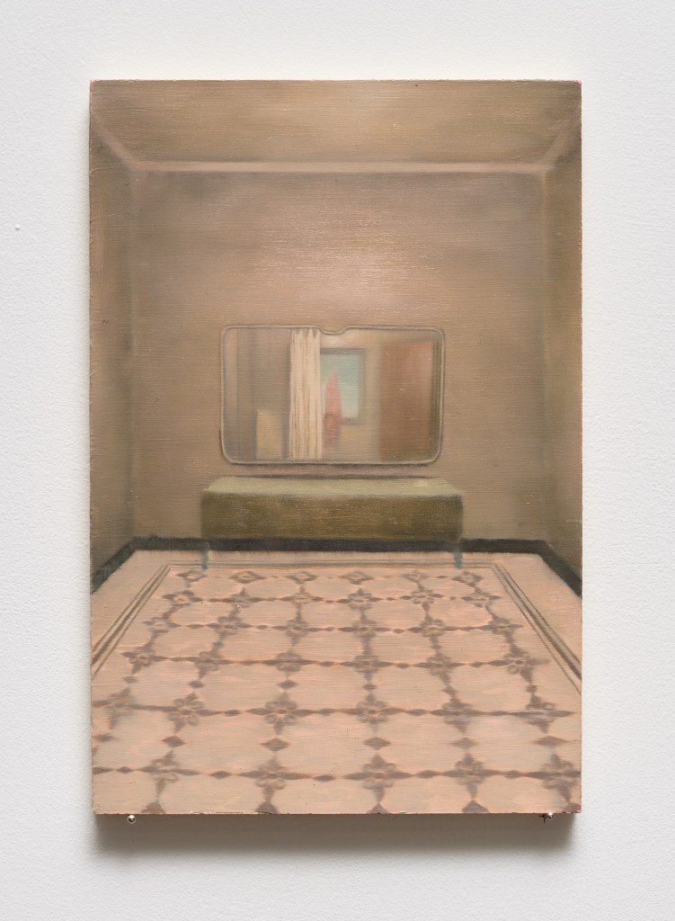 A mirror on a wall 2023 Oil on board 15 x 10cm. Courtesy Leila Greiche